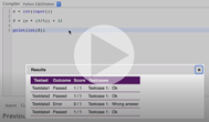 The format will be familiar to students who have taken part in programming olympiads and other programming competitions. A question is presented with an input and output specification and students write a solution in one of the supported programming languages. After the code is submitted, it is compiled (if required) and then several test files are run. In our system a percentage score is given as feedback showing how many tests were passed. The student can then upload and run another file. All submissions are saved and when the challenge is marked the highest score achieved is saved.